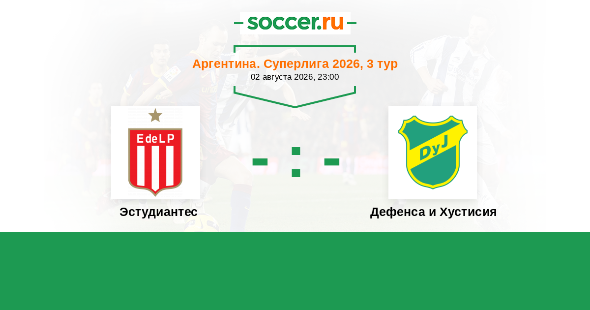Аргентина. Суперлига 03.02.2026 Дефенса и Хустисия Логотип футбольный клуб Дефенса и Хустисия (Флоренсио-Варела) 0:0 Логотип футбольный клуб Эстудиантес (Ла-Плата) Эстудиантес