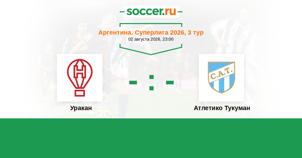 Аргентина. Суперлига 19.06.2022 Уракан Логотип футбольный клуб Уракан (Буэнос-Айрес) 0:0 Логотип футбольный клуб Атлетико Тукуман (Сан-Мигель-де-Тукуман) Атлетико Тукуман