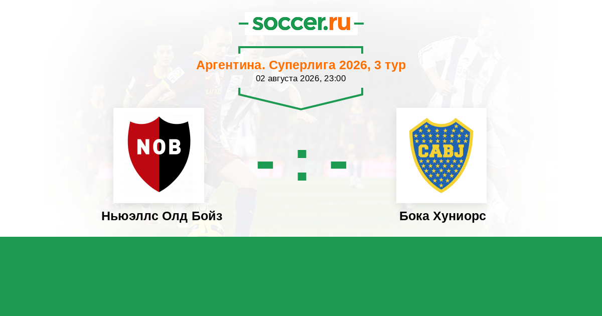 Аргентина. Суперлига 02.02.2026 Бока Хуниорс Логотип футбольный клуб Бока Хуниорс (Буэнос-Айрес) 2:0 Логотип футбольный клуб Ньюэллс Олд Бойз (Росарио) Ньюэллс Олд Бойз