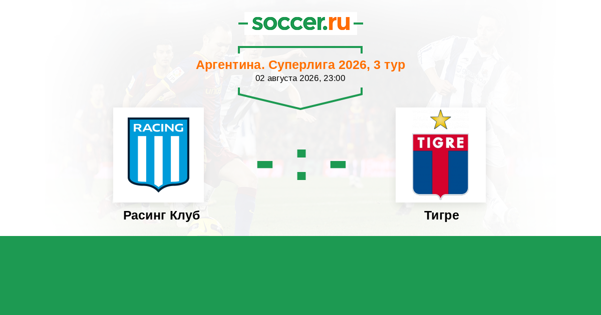 Аргентина. Суперлига 03.02.2026 Тигре Логотип футбольный клуб Тигре (Буэнос-Айрес) 3:1 Логотип футбольный клуб Расинг Клуб (Авельянеда) Расинг Клуб