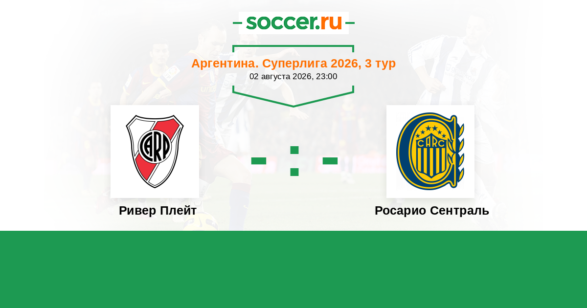 Аргентина. Суперлига 02.02.2026 Росарио Сентраль Логотип футбольный клуб Росарио Сентраль 0:0 Логотип футбольный клуб Ривер Плейт (Буэнос-Айрес) Ривер Плейт