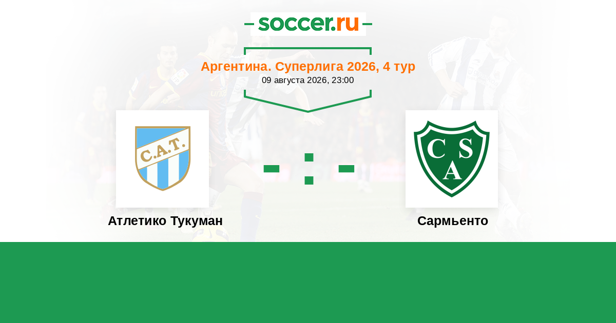 Аргентина. Суперлига 20.07.2022 Атлетико Тукуман Логотип футбольный клуб Атлетико Тукуман (Сан-Мигель-де-Тукуман) 1:0 Логотип футбольный клуб Сармьенто (Хунин) Сармьенто