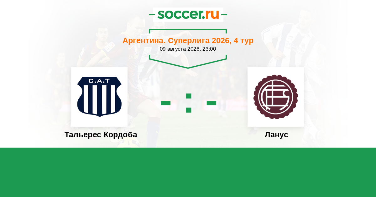 Аргентина. Суперлига 09.08.2025 Ланус Логотип футбольный клуб Ланус 1:0 Логотип футбольный клуб Тальерес Кордоба Тальерес Кордоба