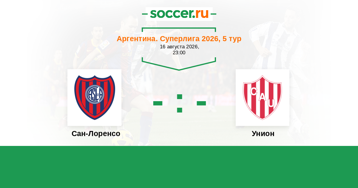 Аргентина. Суперлига 07.08.2021 Унион Логотип футбольный клуб Унион (Санта-Фе) 4:0 Логотип футбольный клуб Сан-Лоренсо (Буэнос-Айрес) Сан-Лоренсо