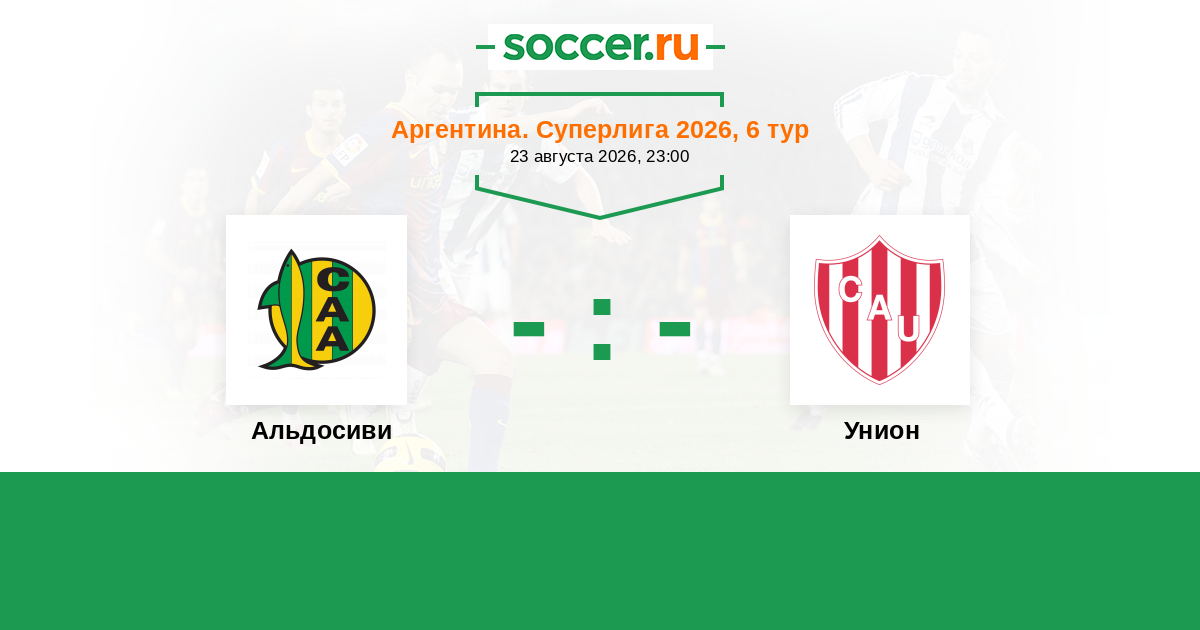 Аргентина. Суперлига 04.10.2025 Унион Логотип футбольный клуб Унион (Санта-Фе) 0:2 Логотип футбольный клуб Альдосиви (Мар-дель-Плата) Альдосиви