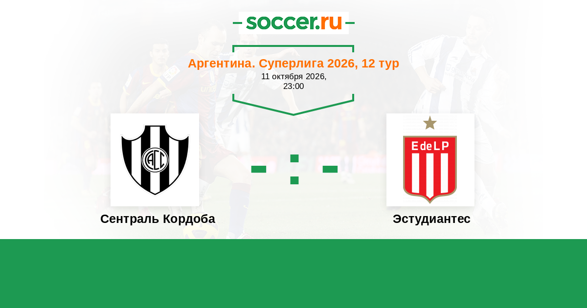 Аргентина. Суперлига 22.10.2019 Сентраль Кордоба Логотип футбольный клуб Сентраль Кордоба (Сантьяго-дель-Эстеро) 0:1 Логотип футбольный клуб Эстудиантес (Ла-Плата) Эстудиантес