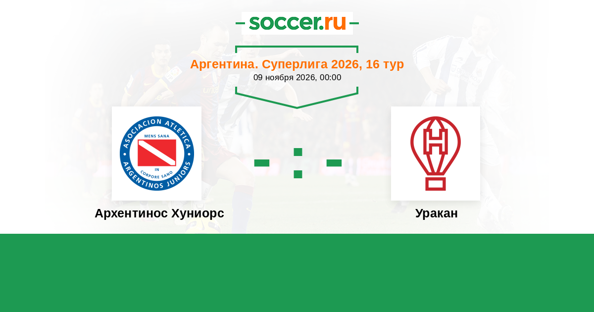 Аргентина. Суперлига 16.04.2023 Уракан Логотип футбольный клуб Уракан (Буэнос-Айрес) 0:0 Логотип футбольный клуб Архентинос Хуниорс (Буэнос-Айрес) Архентинос Хуниорс
