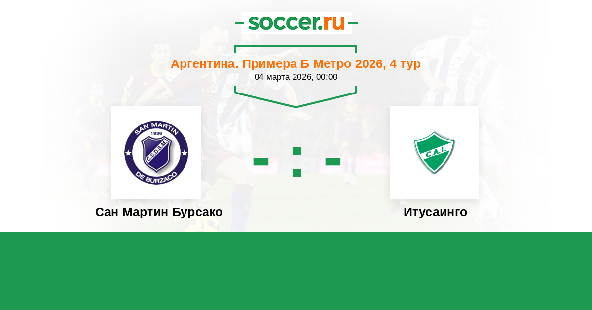Аргентина. Примера Д 27.08.2014 Сан Мартин Бурсако Логотип футбольный клуб Сан Мартин Бурсако 0:0 Логотип футбольный клуб Итусаинго Итусаинго