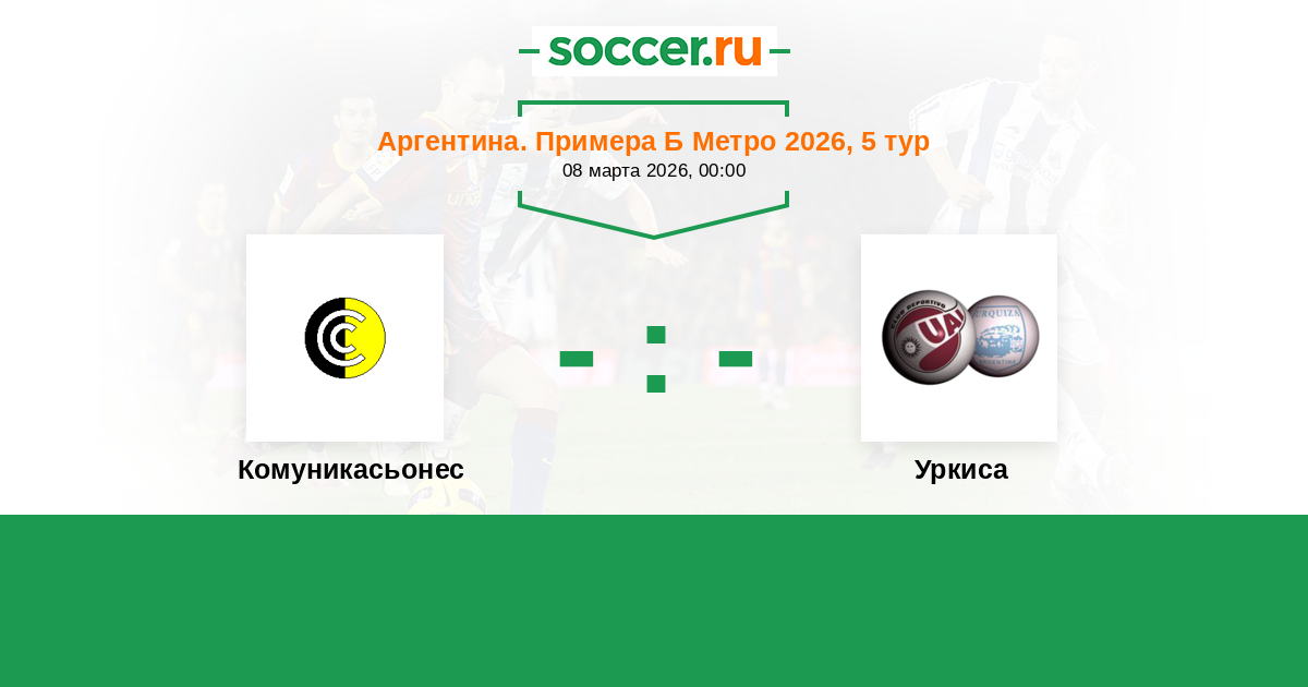 Аргентина. Примера Б Метро 24.03.2018 Комуникасьонес Логотип футбольный клуб Комуникасьонес (Буэнос-Айрес) 3:1 Логотип футбольный клуб Уркиса (Вилья Линч) Уркиса