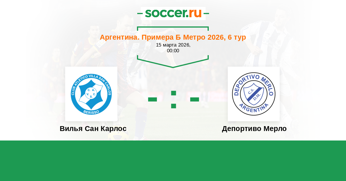 Аргентина. Примера Б Метро 02.07.2021 Вилья Сан Карлос Логотип футбольный клуб Вилья Сан Карлос (Берисо) 0:0 Логотип футбольный клуб Депортиво Мерло Депортиво Мерло