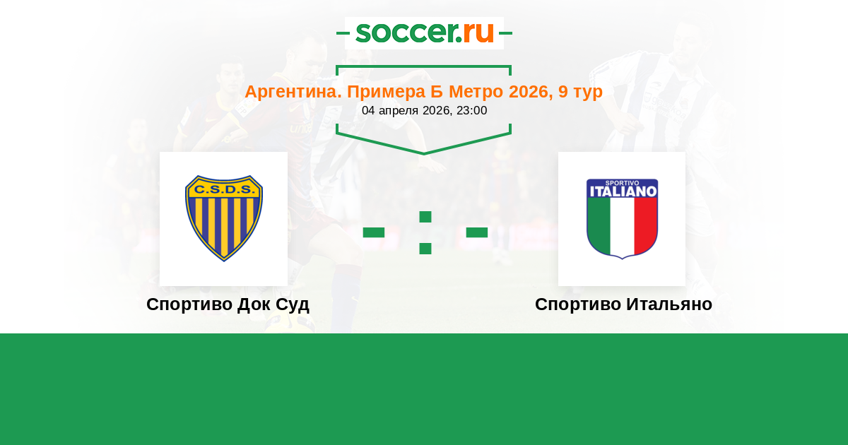 Аргентина. Примера Б Метро 15.09.2025 Спортиво Док Суд Логотип футбольный клуб Спортиво Док Суд (Буэнос-Айрес) 0:0 Логотип футбольный клуб Спортиво Итальяно (Буэнос-Айрес) Спортиво Итальяно