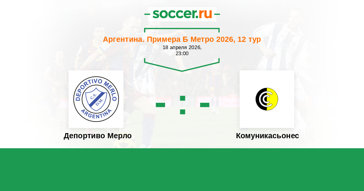 Аргентина. Примера Б Метро 25.02.2023 Комуникасьонес Логотип футбольный клуб Комуникасьонес (Буэнос-Айрес) 1:1 Логотип футбольный клуб Депортиво Мерло Депортиво Мерло