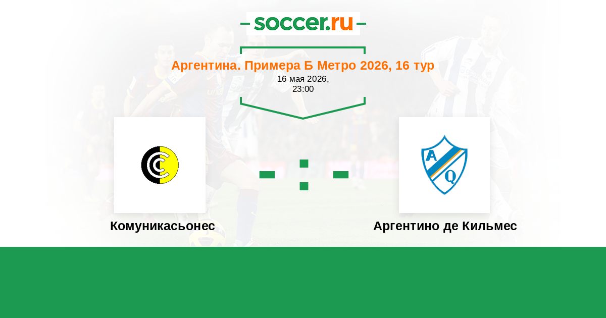 Аргентина. Примера Б Метро 18.07.2023 Комуникасьонес Логотип футбольный клуб Комуникасьонес (Буэнос-Айрес) 1:1 Логотип футбольный клуб Аргентино де Кильмес Аргентино де Кильмес