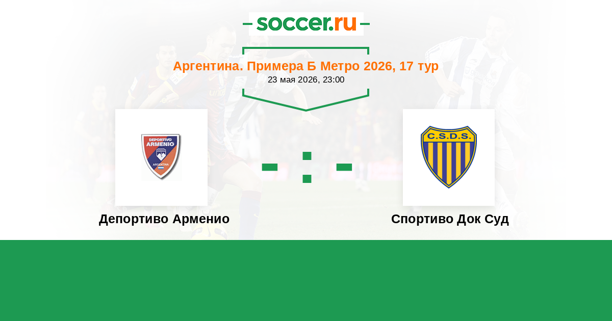 Аргентина. Примера Б Метро 10.06.2023 Депортиво Арменио Логотип футбольный клуб Депортиво Арменио 0:0 Логотип футбольный клуб Спортиво Док Суд (Буэнос-Айрес) Спортиво Док Суд