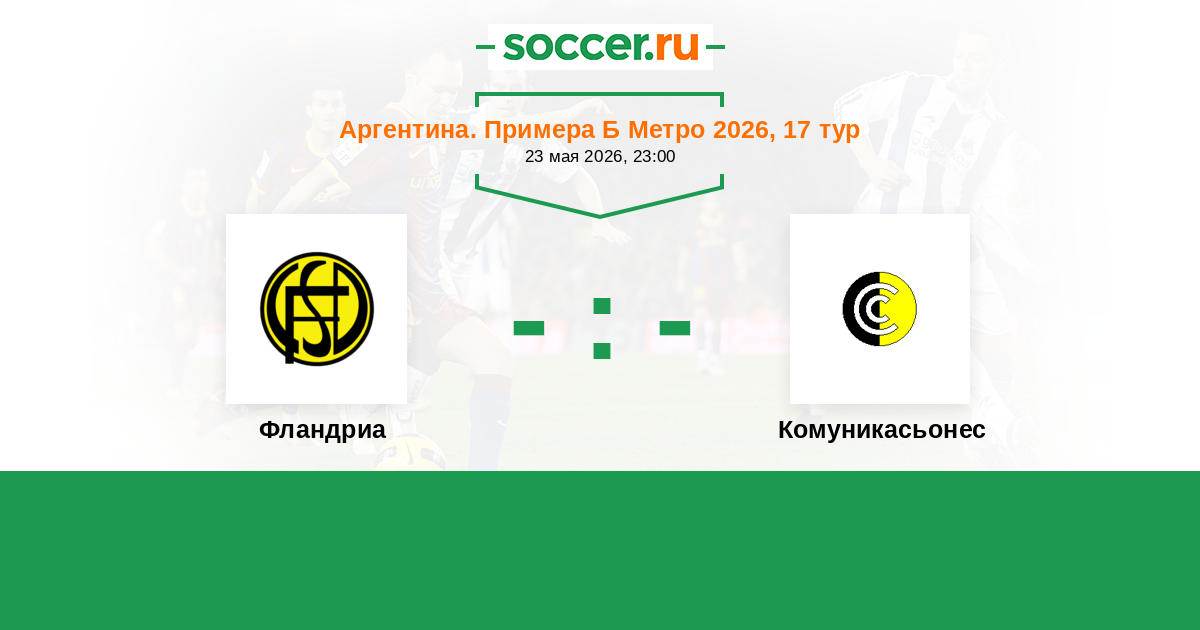 Аргентина. Примера Б Метро 29.08.2018 Фландриа Логотип футбольный клуб Фландриа (Лухан) 1:0 Логотип футбольный клуб Комуникасьонес (Буэнос-Айрес) Комуникасьонес