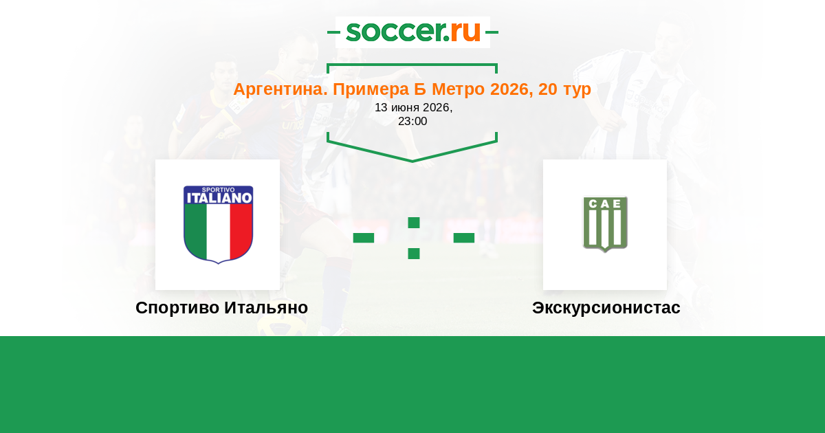 Аргентина. Примера С Метро 01.03.2020 Экскурсионистас Логотип футбольный клуб Экскурсионистас (Буэнос-Айрес) 1:0 Логотип футбольный клуб Спортиво Итальяно (Буэнос-Айрес) Спортиво Итальяно