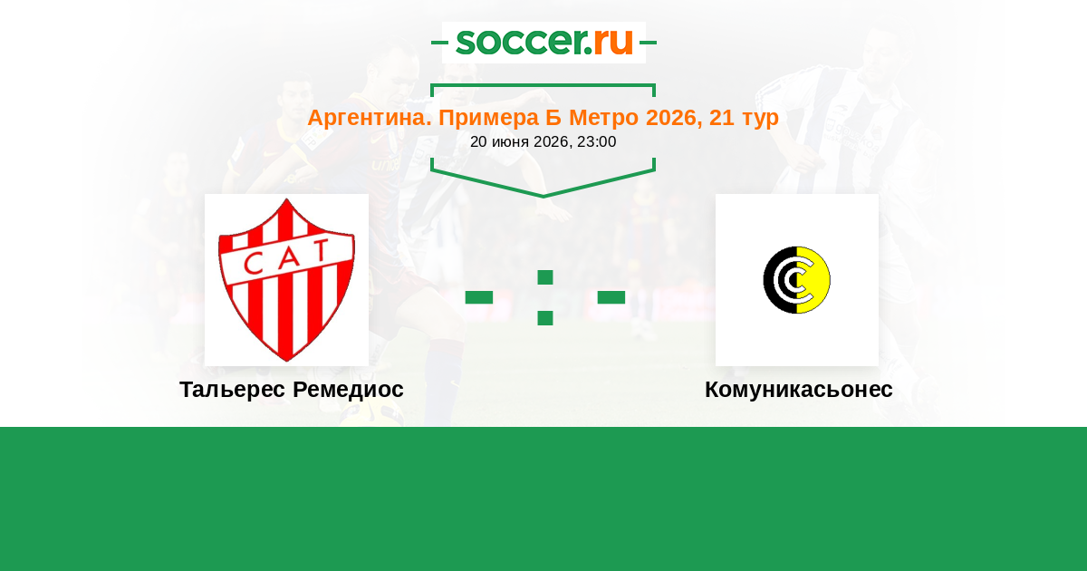 Аргентина. Примера Б Метро 17.11.2018 Тальерес Ремедиос Логотип футбольный клуб Тальерес Ремедиос 0:0 Логотип футбольный клуб Комуникасьонес (Буэнос-Айрес) Комуникасьонес