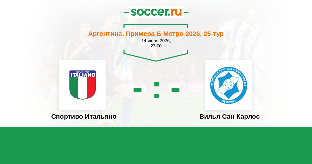 Аргентина. Примера Б Метро 05.09.2025 Спортиво Итальяно Логотип футбольный клуб Спортиво Итальяно (Буэнос-Айрес) 0:0 Логотип футбольный клуб Вилья Сан Карлос (Берисо) Вилья Сан Карлос