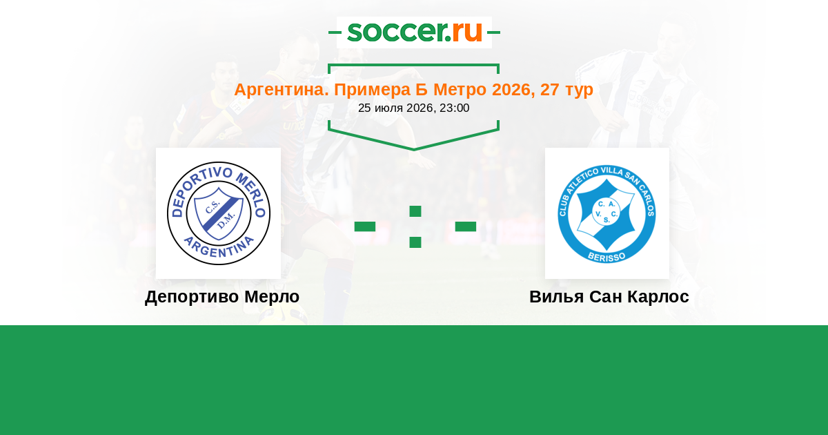 Аргентина. Примера Б Метро 13.10.2025 Депортиво Мерло Логотип футбольный клуб Депортиво Мерло 1:1 Логотип футбольный клуб Вилья Сан Карлос (Берисо) Вилья Сан Карлос
