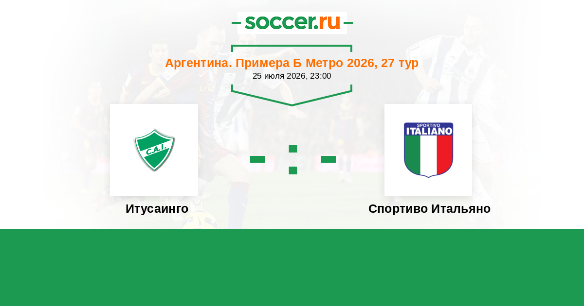 Аргентина. Примера С Метро 09.05.2021 Итусаинго Логотип футбольный клуб Итусаинго 0:2 Логотип футбольный клуб Спортиво Итальяно (Буэнос-Айрес) Спортиво Итальяно
