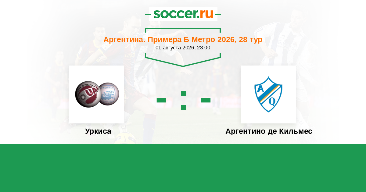 Аргентина. Примера Б Метро 01.07.2023 Уркиса Логотип футбольный клуб Уркиса (Вилья Линч) 1:2 Логотип футбольный клуб Аргентино де Кильмес Аргентино де Кильмес