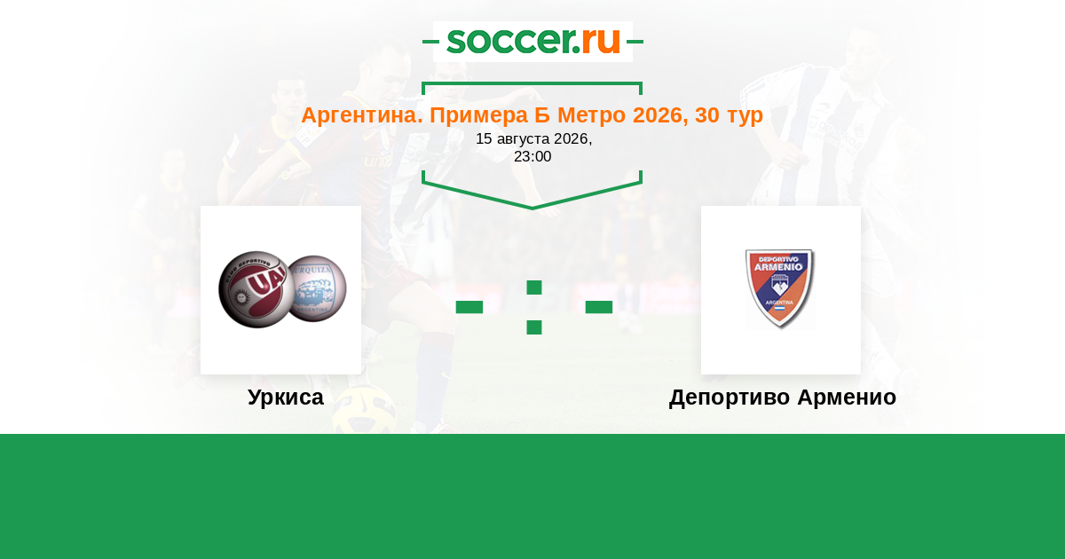 Аргентина. Примера Б Метро 20.09.2014 Уркиса Логотип футбольный клуб Уркиса (Вилья Линч) 1:1 Логотип футбольный клуб Депортиво Арменио Депортиво Арменио