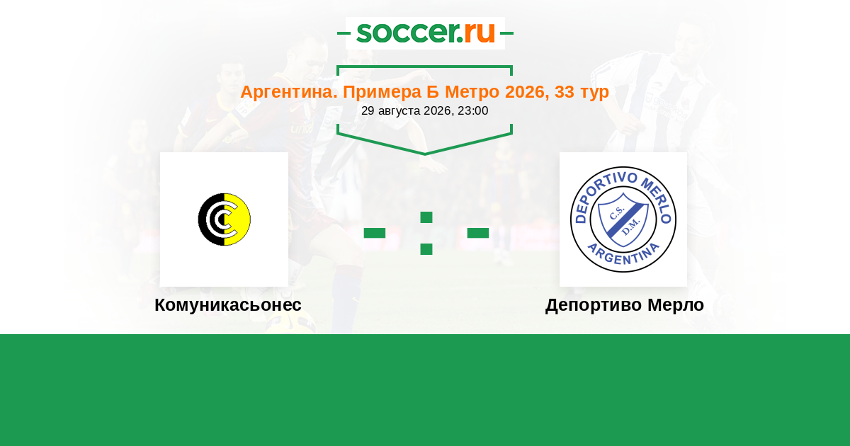 Аргентина. Примера Б Метро 25.02.2023 Комуникасьонес Логотип футбольный клуб Комуникасьонес (Буэнос-Айрес) 1:1 Логотип футбольный клуб Депортиво Мерло Депортиво Мерло