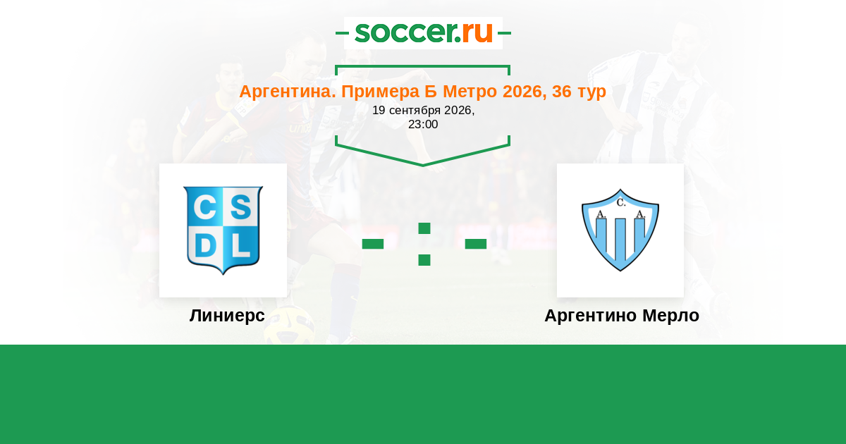 Аргентина. Примера Б Метро 20.09.2025 Аргентино Мерло Логотип футбольный клуб Аргентино Мерло 5:1 Логотип футбольный клуб Линиерс (Ла-Матанса) Линиерс