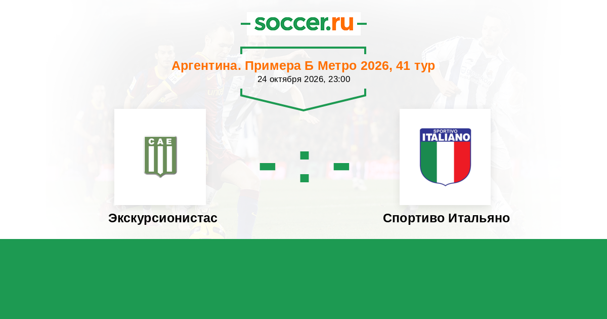 Аргентина. Примера Б Метро 16.03.2025 Экскурсионистас Логотип футбольный клуб Экскурсионистас (Буэнос-Айрес) 2:0 Логотип футбольный клуб Спортиво Итальяно (Буэнос-Айрес) Спортиво Итальяно