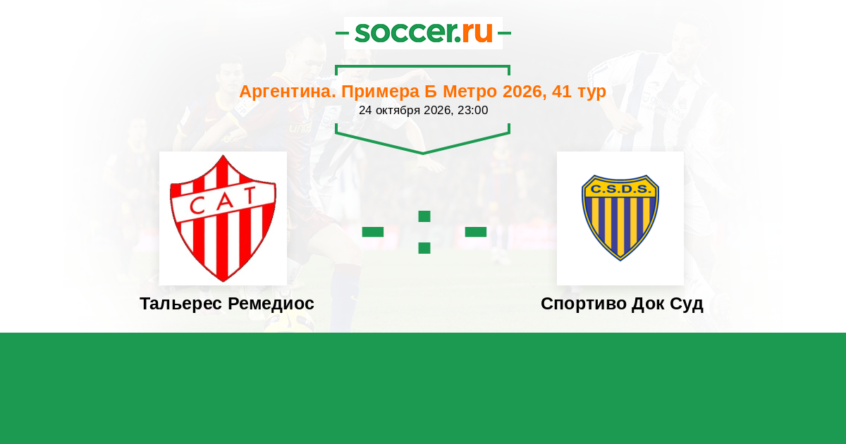 История матча Тальерес Ремедиос против Спортиво Док Суд