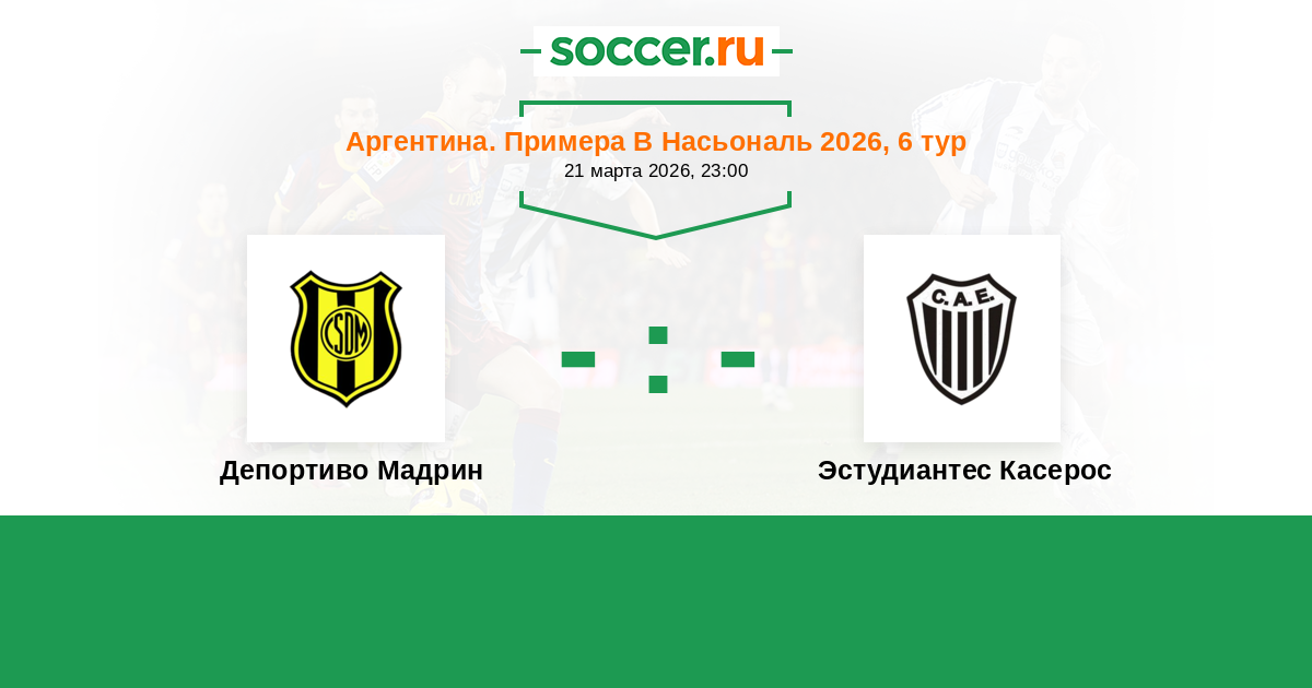 История матча Депортиво Мадрин против Эстудиантес Касерос