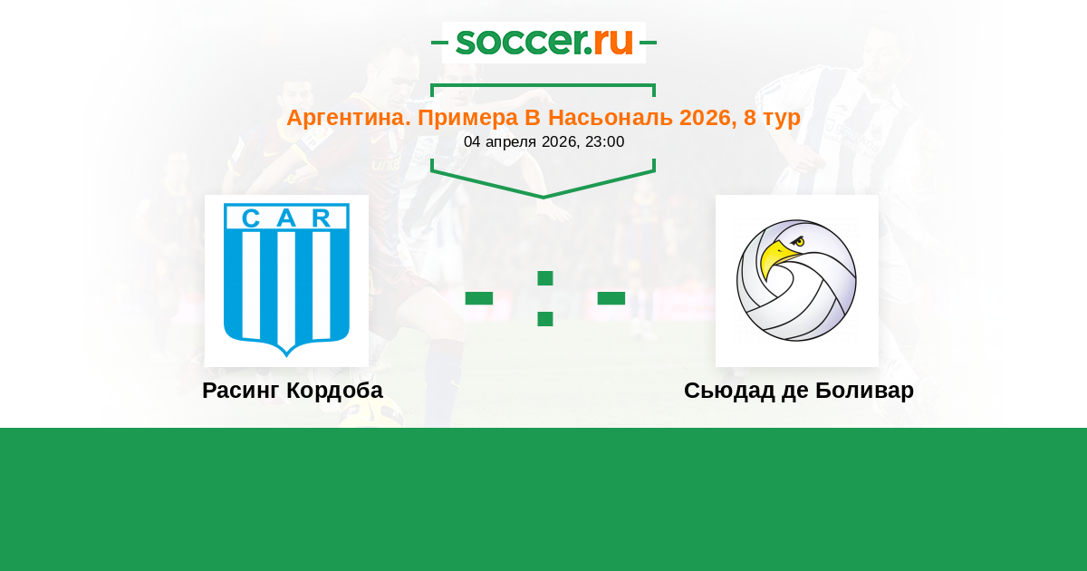 Матч Расинг Кордоба против Сьюдад де Боливар