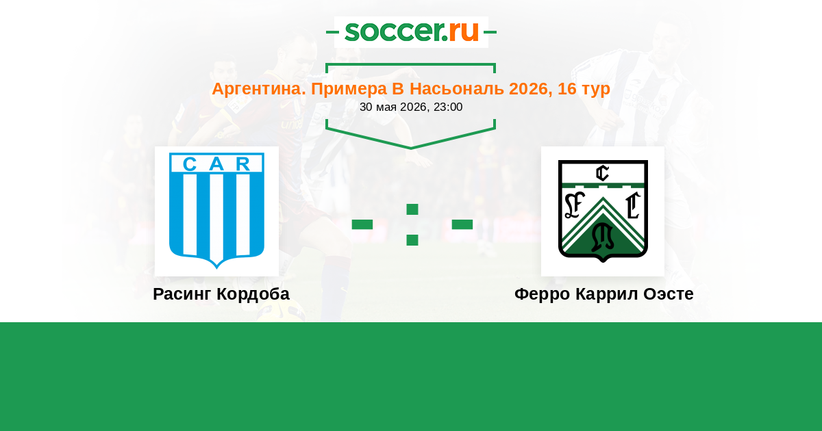История матча Расинг Кордоба против Ферро Каррил Оэсте