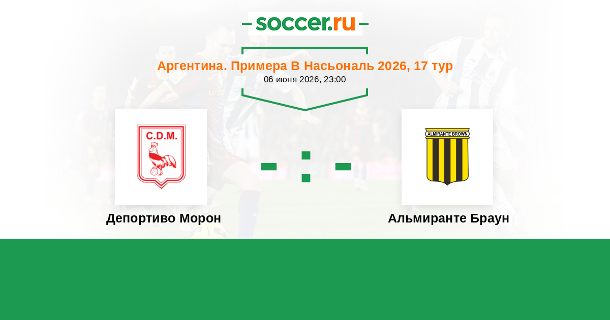 Аргентина. Примера Б Насьональ 18.06.2022 Альмиранте Браун Логотип футбольный клуб Альмиранте Браун (Буэнос-Айрес) 1:1 Логотип футбольный клуб Депортиво Морон Депортиво Морон