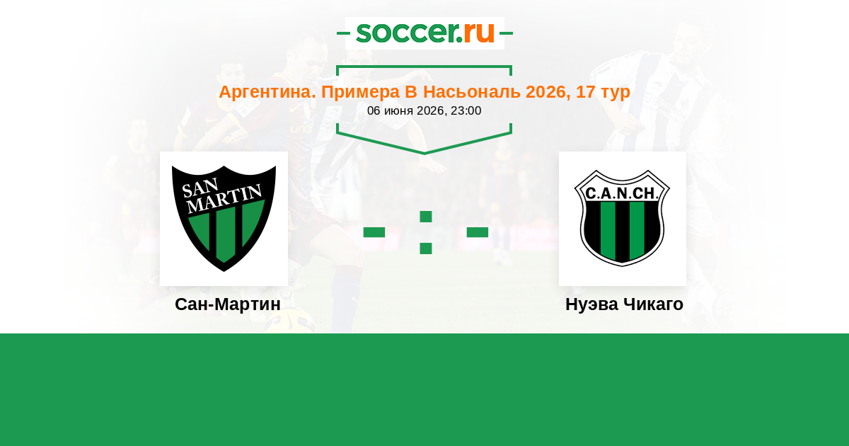Аргентина. Примера Б Насьональ 06.04.2023 Сан-Мартин Логотип футбольный клуб Сан-Мартин (Сан Хуан) 0:0 Логотип футбольный клуб Нуэва Чикаго ( Матадерос) Нуэва Чикаго