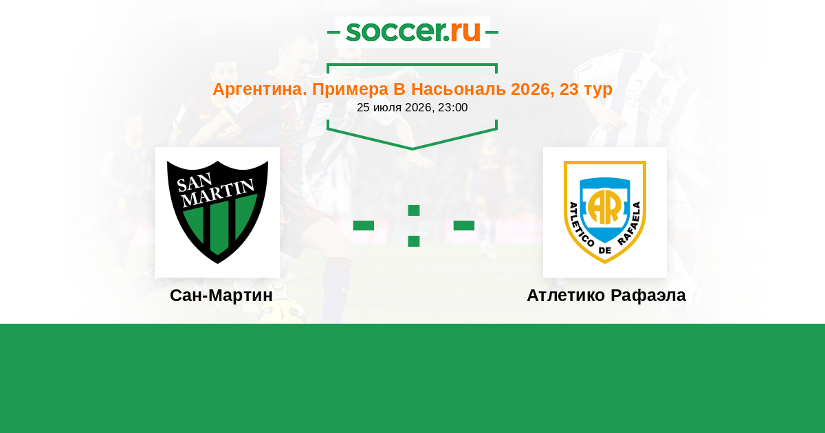 Аргентина. Примера Б Насьональ 24.07.2021 Атлетико Рафаэла Логотип футбольный клуб Атлетико Рафаэла 0:2 Логотип футбольный клуб Сан-Мартин (Сан Хуан) Сан-Мартин