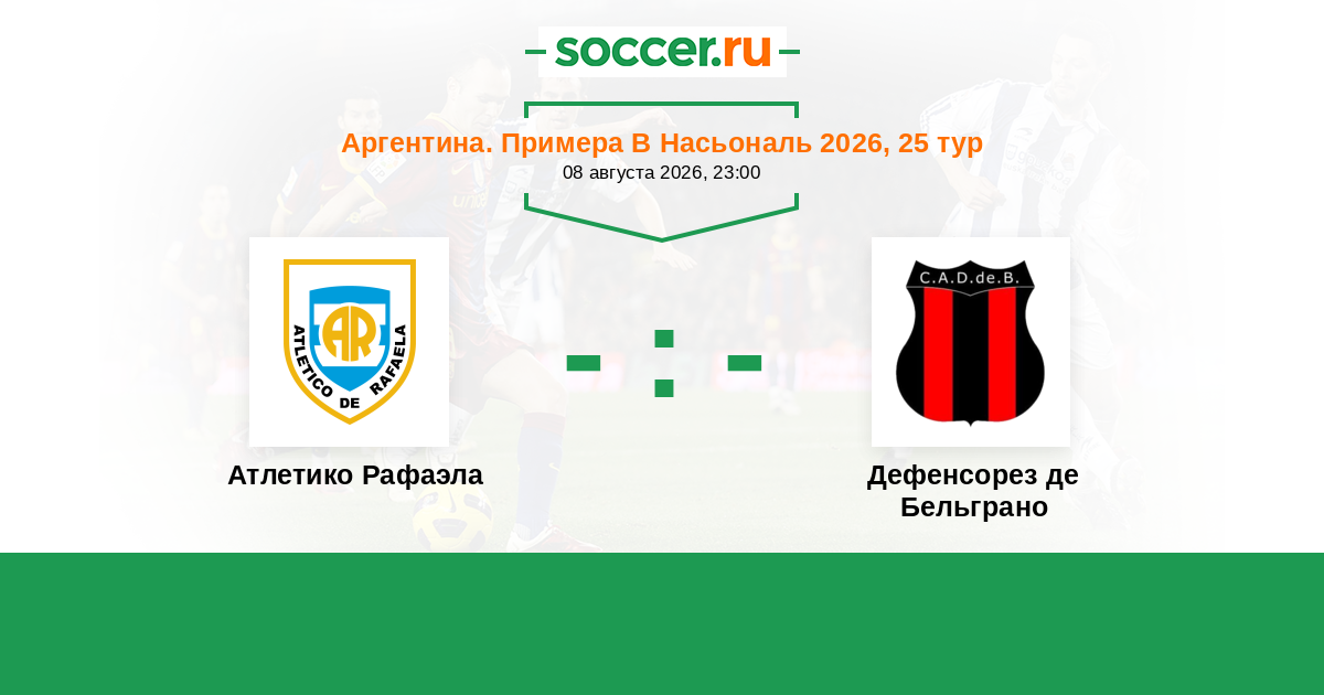 Аргентина. Примера Б Насьональ 03.04.2021 Атлетико Рафаэла Логотип футбольный клуб Атлетико Рафаэла 0:0 Логотип футбольный клуб Дефенсорез де Бельграно (Буэнос-Айрес) Дефенсорез де Бельграно