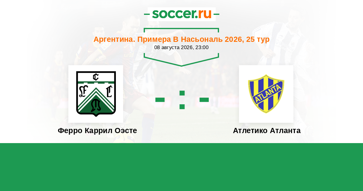 Аргентина. Примера Б Насьональ 23.08.2025 Атлетико Атланта Логотип футбольный клуб Атлетико Атланта (Буэнос-Айрес) 2:1 Логотип футбольный клуб Ферро Каррил Оэсте (Буэнос-Айрес) Ферро Каррил Оэсте