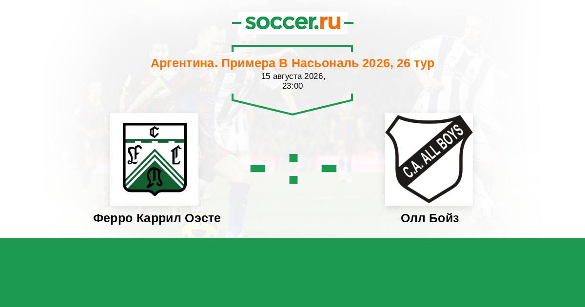 Аргентина. Примера Б Насьональ 24.04.2015 Олл Бойз Логотип футбольный клуб Олл Бойз (Буэнос-Айрес) 0:0 Логотип футбольный клуб Ферро Каррил Оэсте (Буэнос-Айрес) Ферро Каррил Оэсте