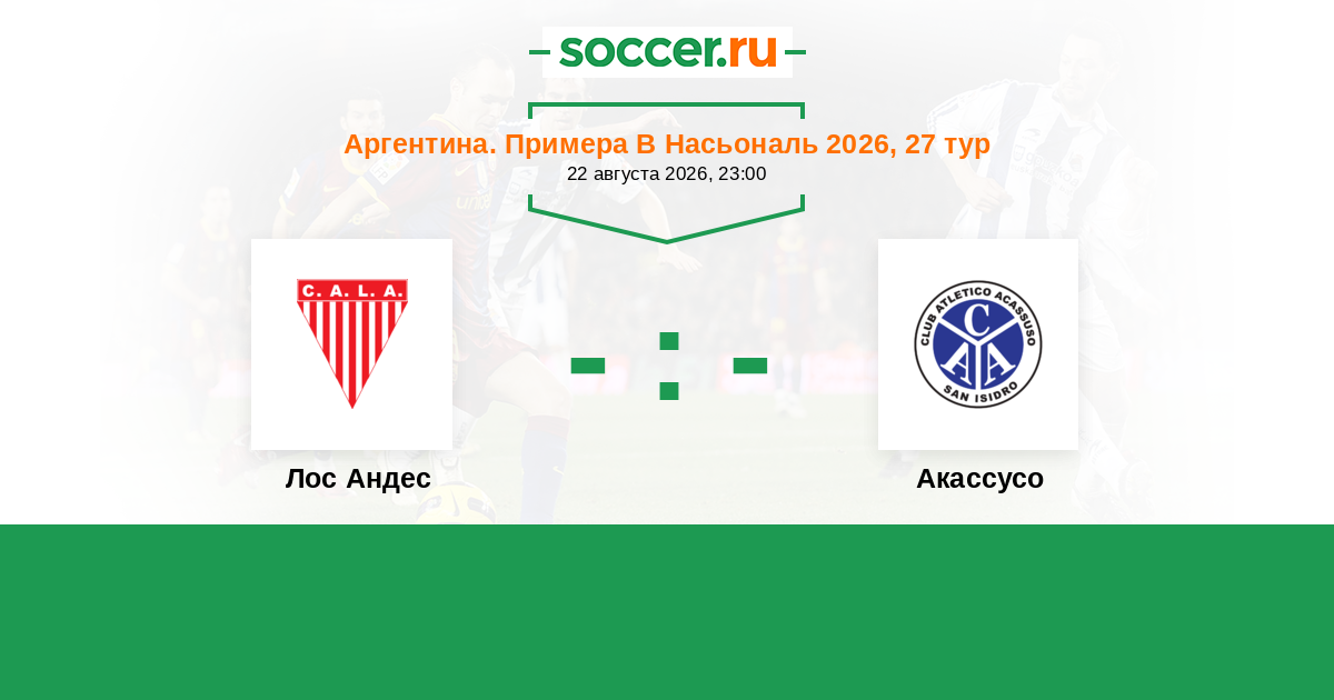 Аргентина. Примера Б Метро 26.06.2021 Акассусо Логотип футбольный клуб Акассусо (Сан-Исидро) 1:0 Логотип футбольный клуб Лос Андес (Ломас-де-Самора) Лос Андес