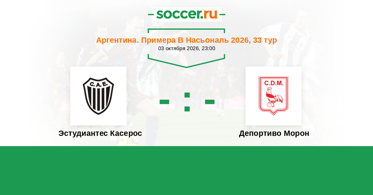 Аргентина. Примера Б Насьональ 26.04.2025 Эстудиантес Касерос Логотип футбольный клуб Эстудиантес Касерос 0:1 Логотип футбольный клуб Депортиво Морон Депортиво Морон