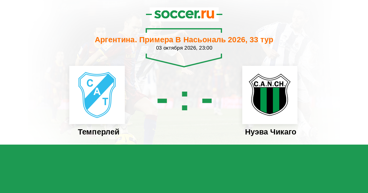 Аргентина. Примера Б Насьональ 05.10.2025 Темперлей Логотип футбольный клуб Темперлей (Тампрелей) 3:0 Логотип футбольный клуб Нуэва Чикаго ( Матадерос) Нуэва Чикаго