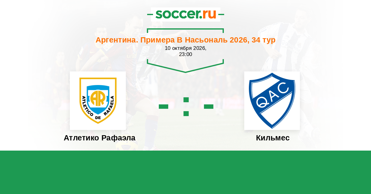 Аргентина. Примера Б Насьональ 17.04.2018 Атлетико Рафаэла Логотип футбольный клуб Атлетико Рафаэла 0:2 Логотип футбольный клуб Кильмес Кильмес