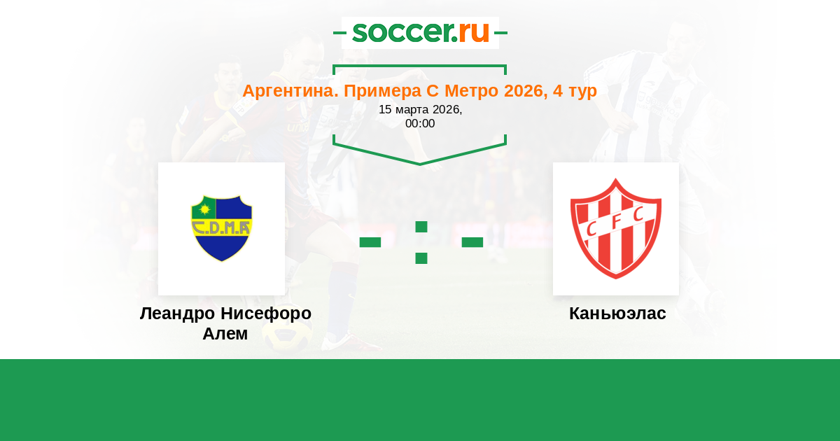 Аргентина. Примера С Метро 26.02.2018 Каньюэлас Логотип футбольный клуб Каньюэлас 1:0 Логотип футбольный клуб Леандро Нисефоро Алем (Буэнос-Айрес) Леандро Нисефоро Алем