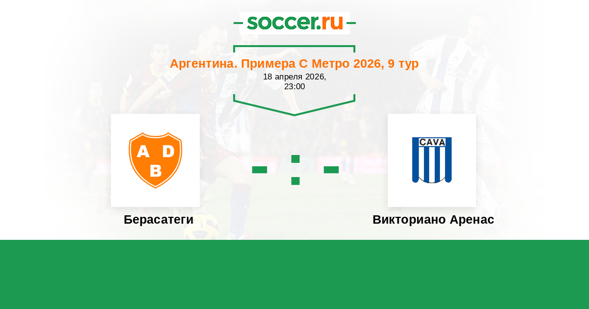 Аргентина. Примера С Метро 16.03.2019 Викториано Аренас Логотип футбольный клуб Викториано Аренас 1:1 Логотип футбольный клуб Берасатеги (Буэнос-Айрес) Берасатеги
