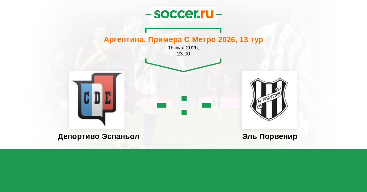 Аргентина. Примера С Метро 15.05.2022 Эль Порвенир Логотип футбольный клуб Эль Порвенир (Буэнос-Айрес) 0:2 Логотип футбольный клуб Депортиво Эспаньол (Буэнос-Айрес) Депортиво Эспаньол