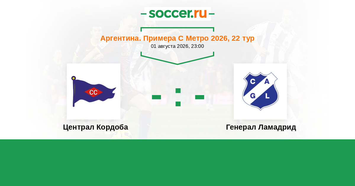 Аргентина. Примера С Метро 26.08.2019 Генерал Ламадрид Логотип Генерал Ламадрид (Буэнос-Айрес) 0:0 Логотип футбольный клуб Централ Кордоба Централ Кордоба