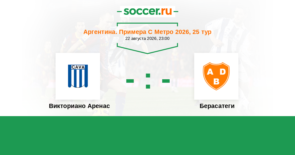 Аргентина. Примера С Метро 01.10.2022 Викториано Аренас Логотип футбольный клуб Викториано Аренас 2:0 Логотип футбольный клуб Берасатеги (Буэнос-Айрес) Берасатеги