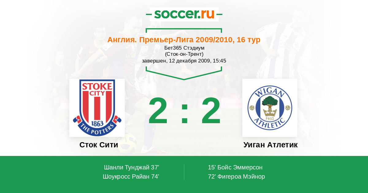 Протокол матча Сток Сити против Уиган Атлетик