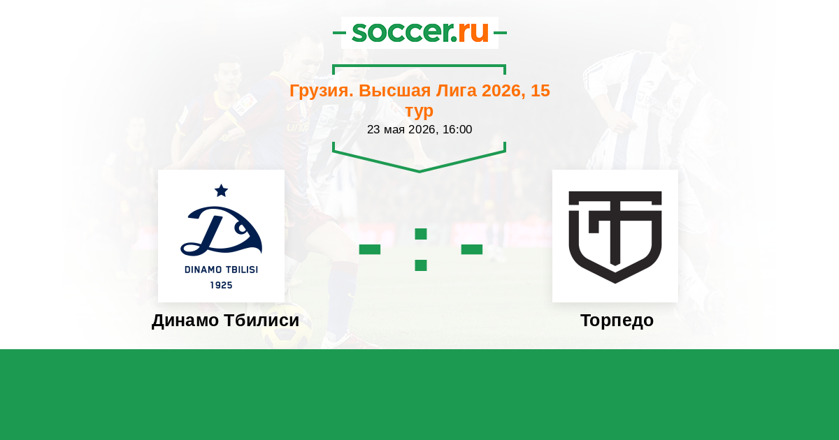 Грузия. Высшая лига 05.03.2021 Торпедо Логотип футбольный клуб Торпедо (Кутаиси) 0:2 Логотип футбольный клуб Динамо Тбилиси Динамо Тбилиси